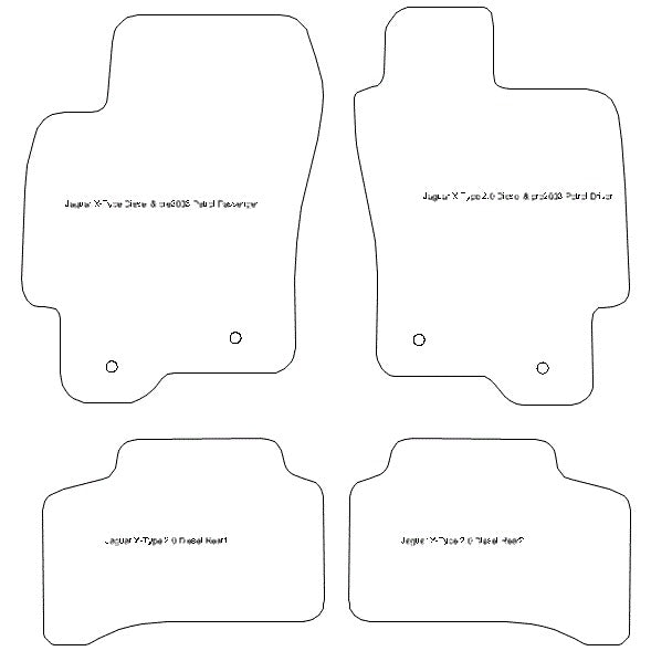 Elevate your car's interior game with our custom-made, high-performance car mats. Designed with top-of-the-line materials, our mats for ‘’Jaguar X-Type [Petrol] 2003 - 2009‘’ withstand any pressure and resist all wear and tear. Crafted to fit the interior of your car perfectly, the mats come in a variety of shapes and styles, ensuring that you'll find the perfect match for your vehicle.